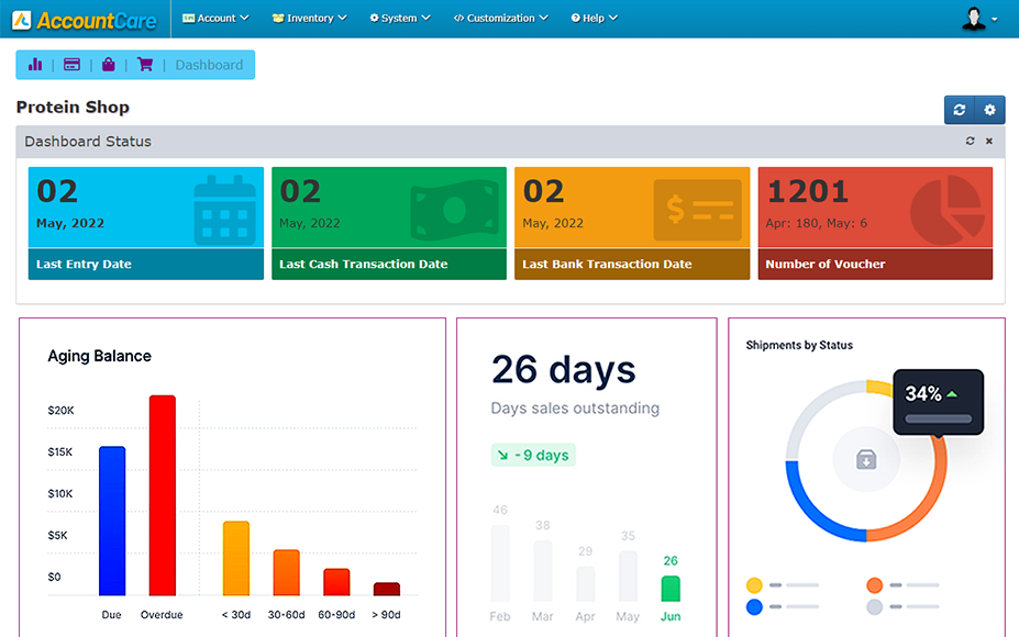 Invoice integration is a direct connection between accounting and inventory software to keep track of your stock and thereby have an effective control over it provided you use both accounting and inventory modules of Account-Care.